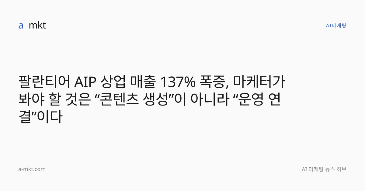 팔란티어 AIP 상업 매출 137% 폭증, 마케터가 봐야 할 것은 “콘텐츠 생성”이 아니라 “운영 연결”이다